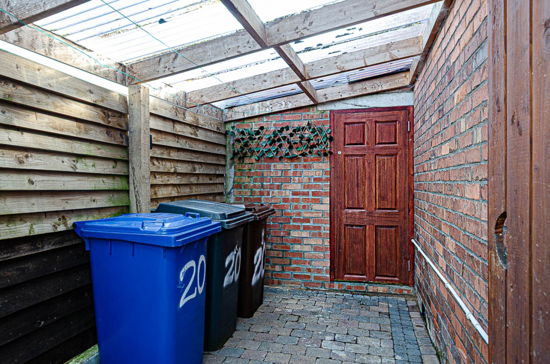 OutsideBrick paved forecourt and covered yard. Rear garden in paving with oil boiler in housing and storage tank