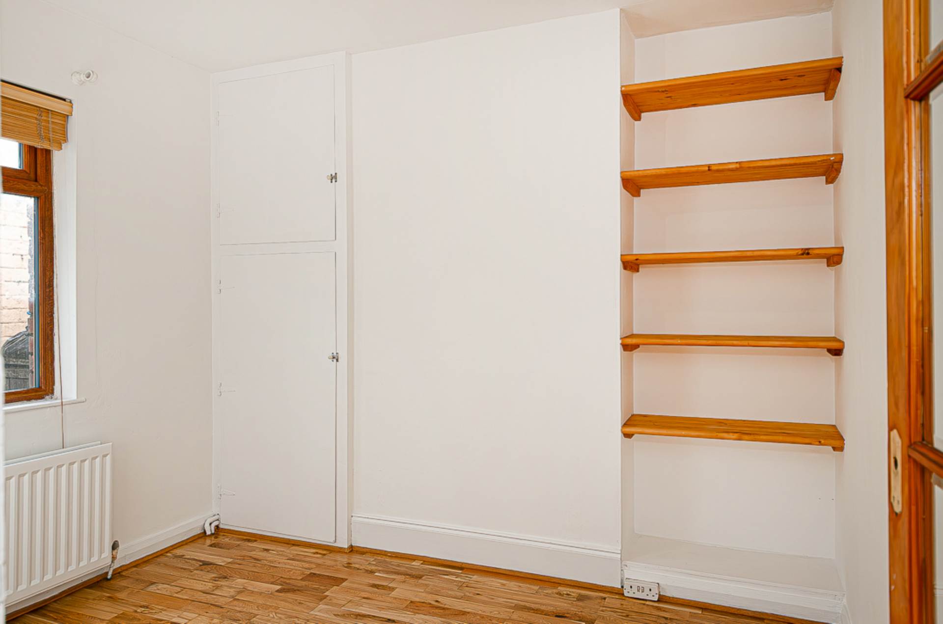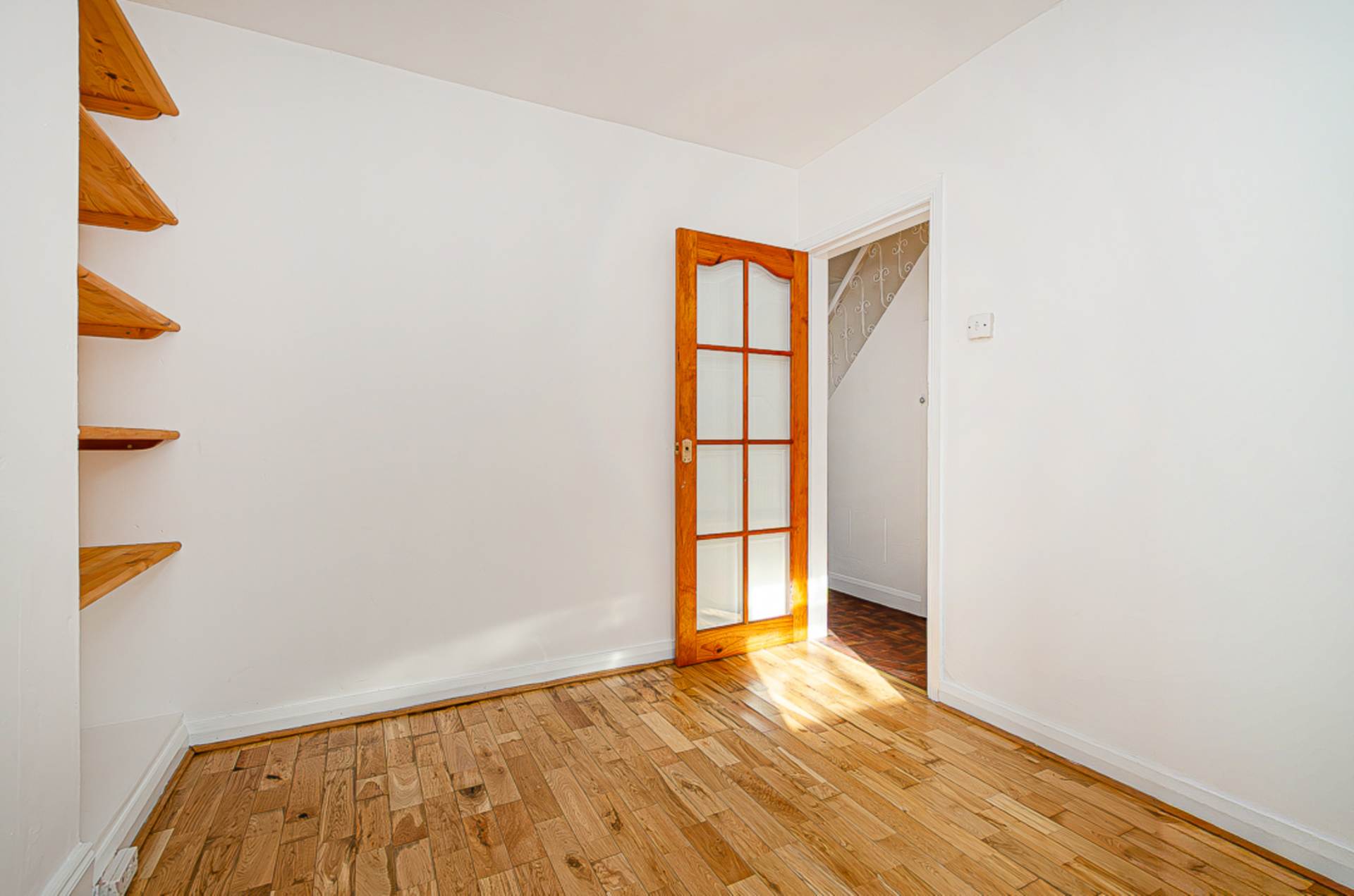 Dining room - 9'6" (2.9m) x 9'6" (2.9m)Oak timber floor, built in shelving and hotpress