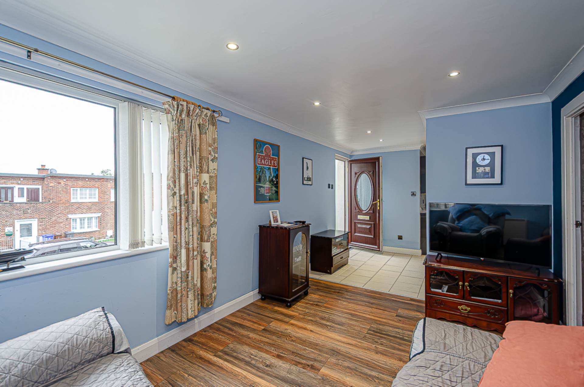 Living room - 14'11" (4.55m) x 9'4" (2.84m)Timber laminate floor and recessed spotlights