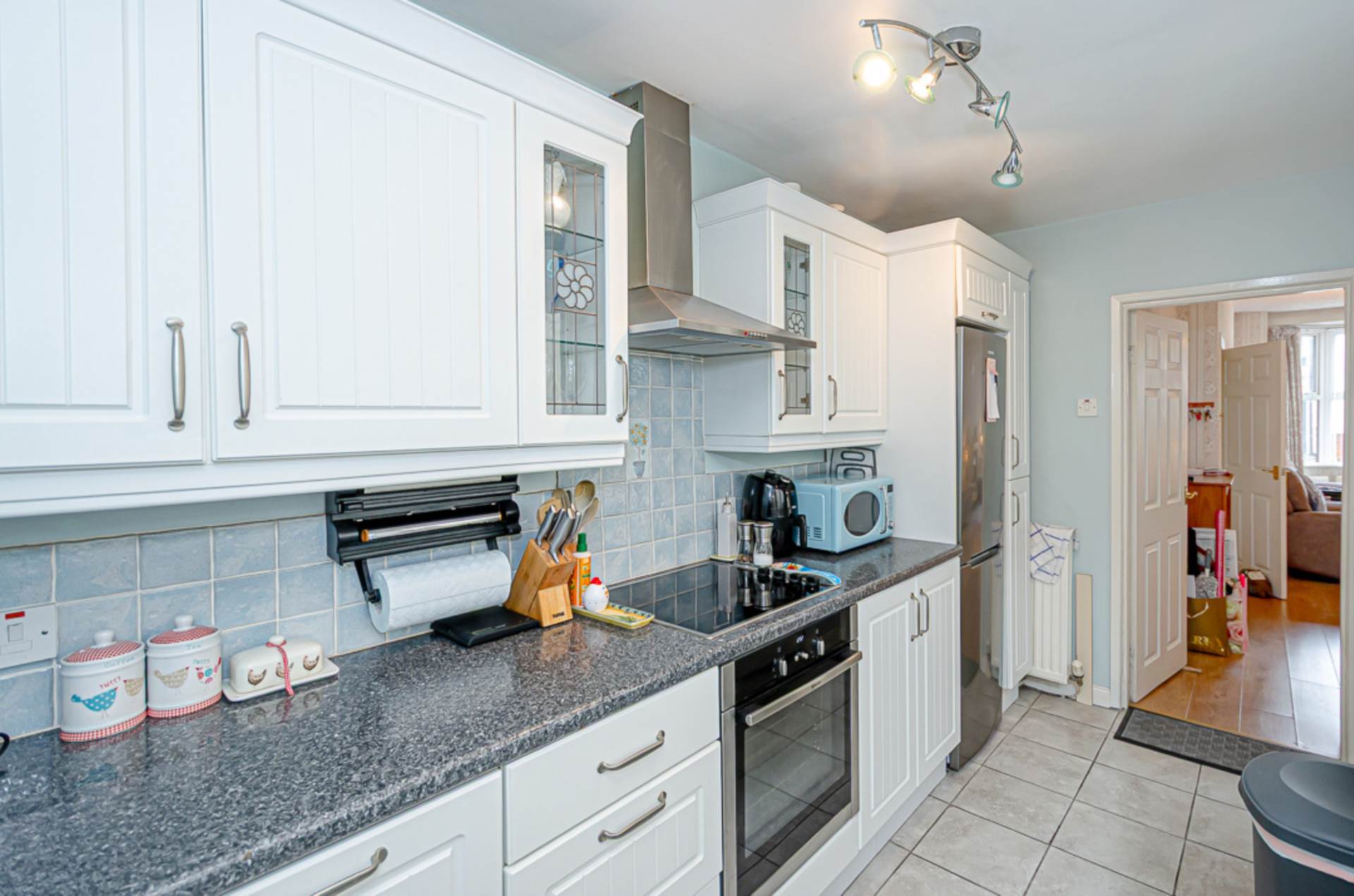 The heart of the home is a generously sized kitchen, featuring ample storage and worktop space perfect for the home chef. Upstairs, you`ll find two well proportioned bedrooms, both offering comfortable living quarters, and a large family bathroom fitted with modern fixtures. Both the living space and the bedrooms have been enhanced in terms of space by the removal of the chimney breasts.
