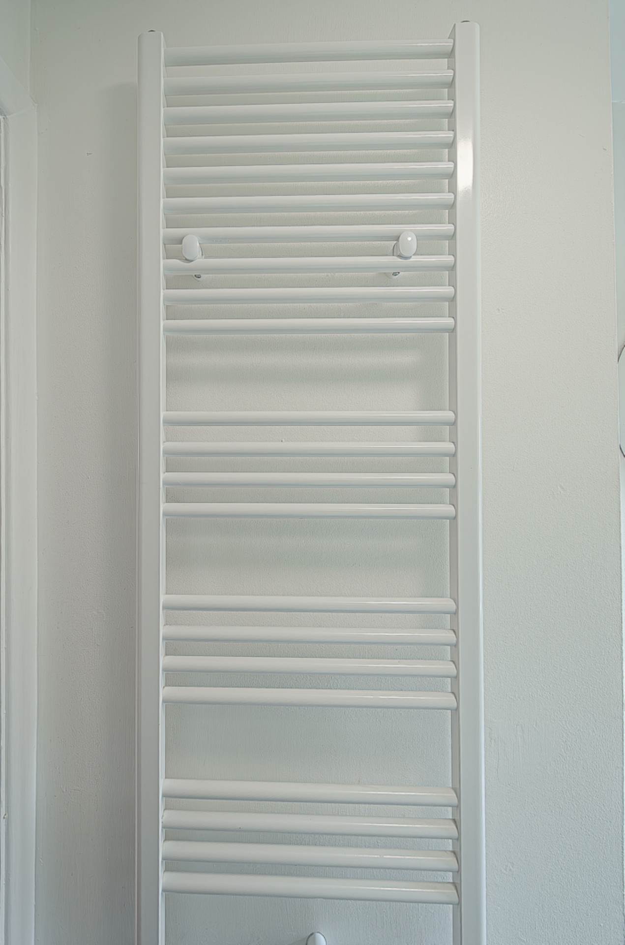 Bathroom - 6'5" (1.96m) x 5'10" (1.78m)B-shaped bath with thermostatic shower, dual shower heads, mixer taps and shower screen, wash hand basin in two drawer vanity unit, W.C, part tiled walls, white towel rail radiator and extractor fan